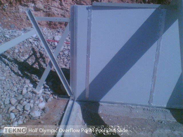 - Construction of 12 x 25 m measurement, 1.4 - 1.8 m depth 300 m² area and 520 m³ water volumed overflowing panel-liner pool