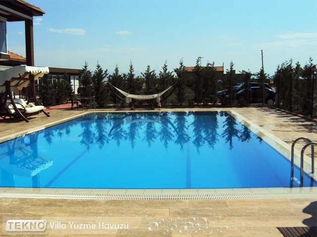 7 x 14 m ölçülerinde, 1.60 - 1.90 m çift kademe derinlikte, 98 m² ve 175 m³, taşmalı yüzme havuzu mekanik-elektrik tesisatı